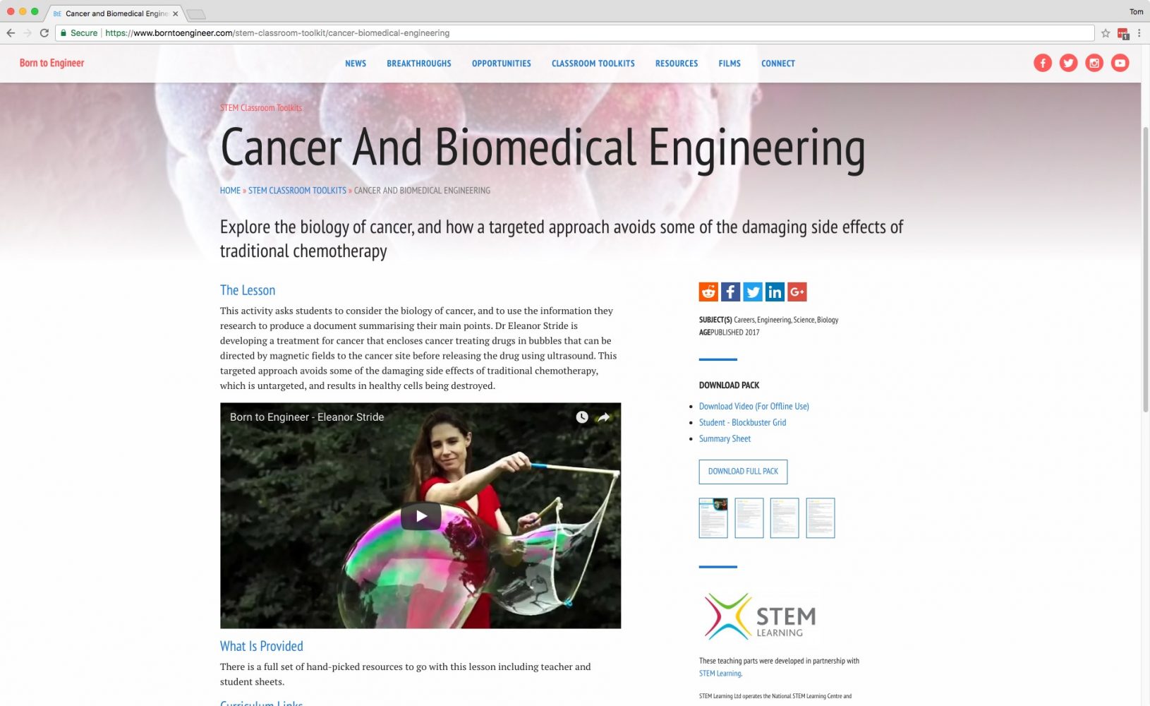 The STEM Classroom Toolkits have been produced in collaboration with the STEM Learning are being distributed completely free for use in the classroom.